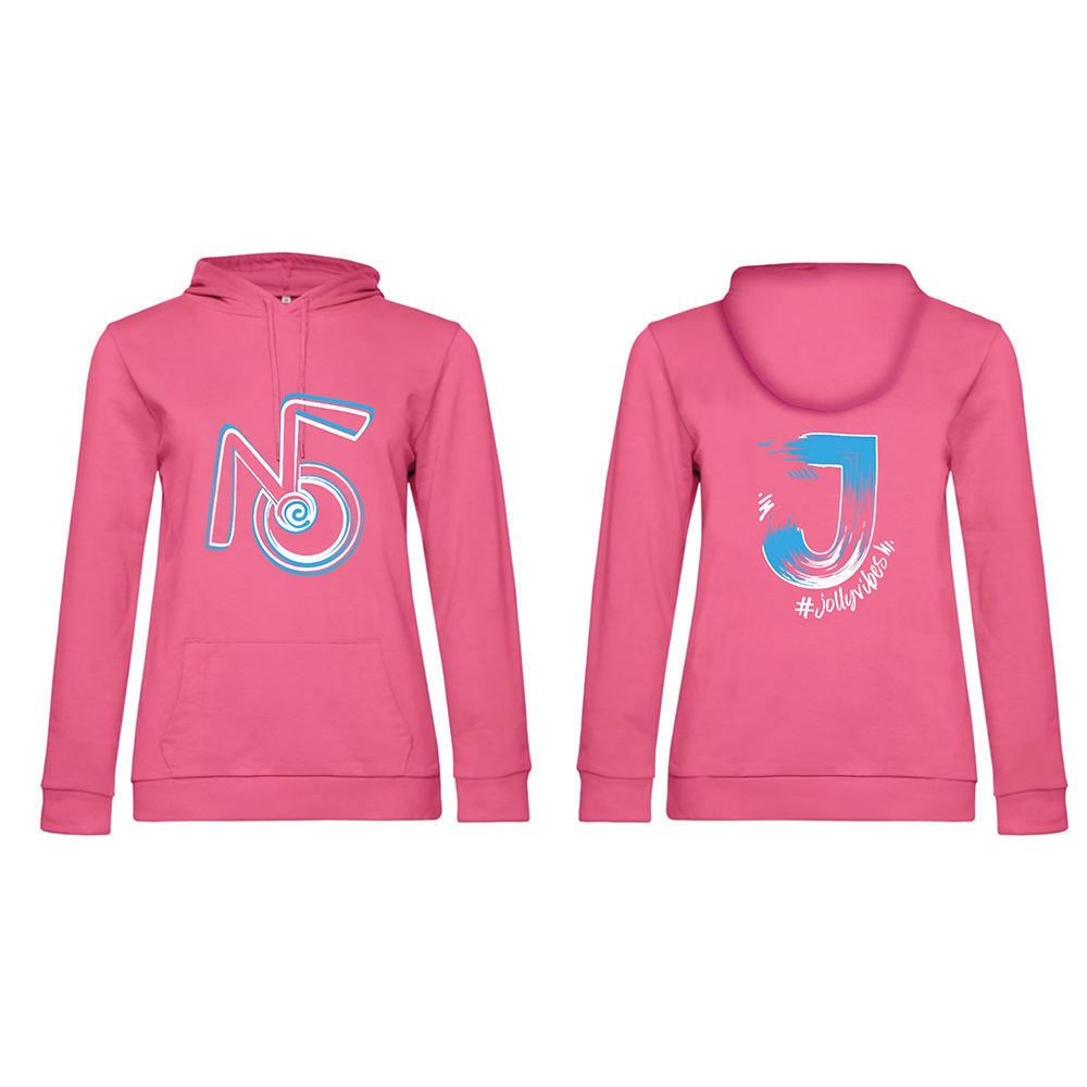 Felpa con cappuccio fuxia in cotone, con Jollone frontale e maxi J #JollyVibes sul retro.